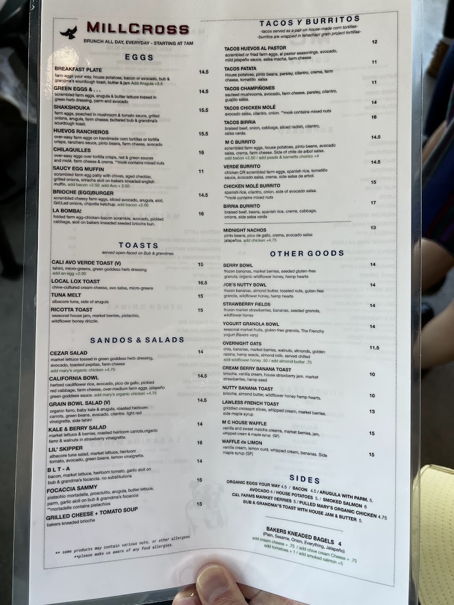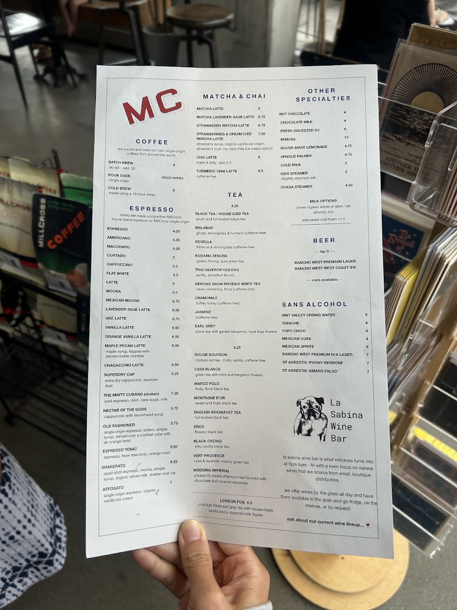 Welcome to MillCross Coffee Bar & Kitchen / La Sabina Wine Bar, a hidden gem nestled in Culver City. This inviting café offers a delightful menu that promises to please both coffee aficionados and casual diners alike.